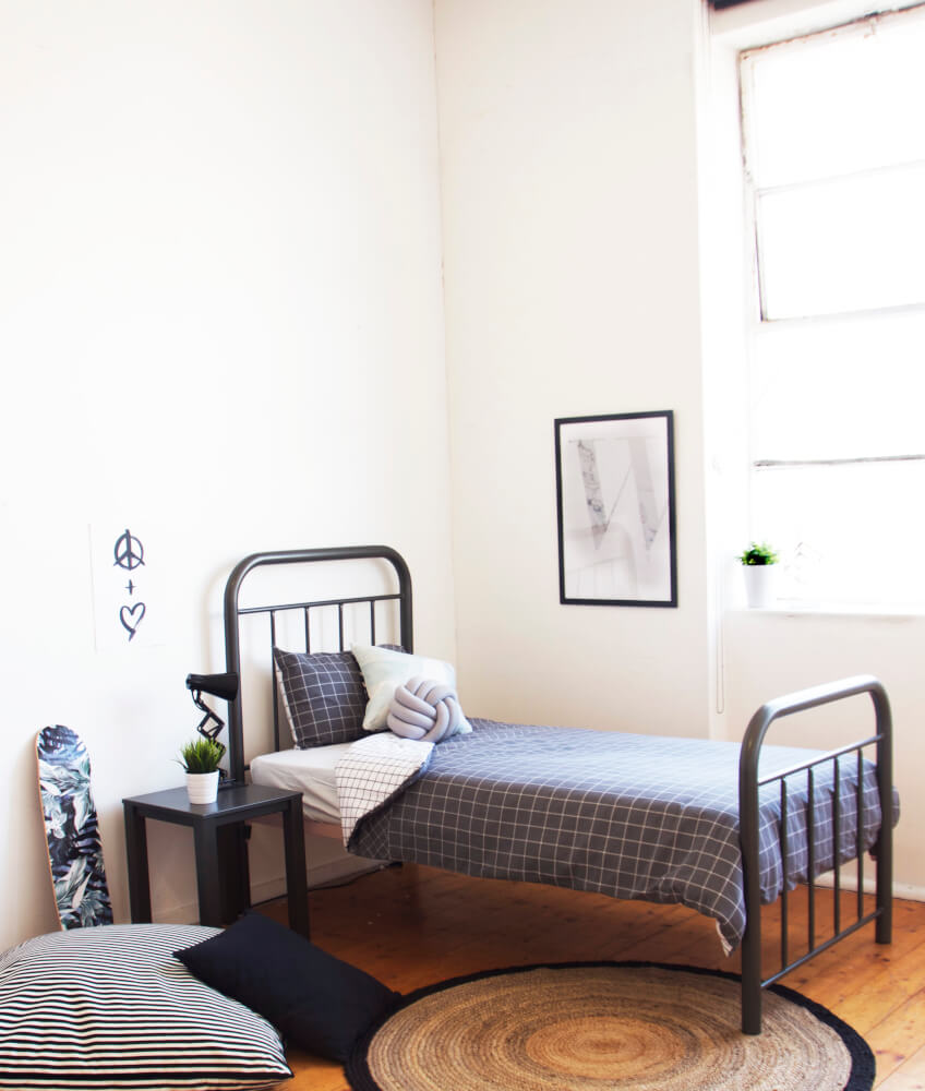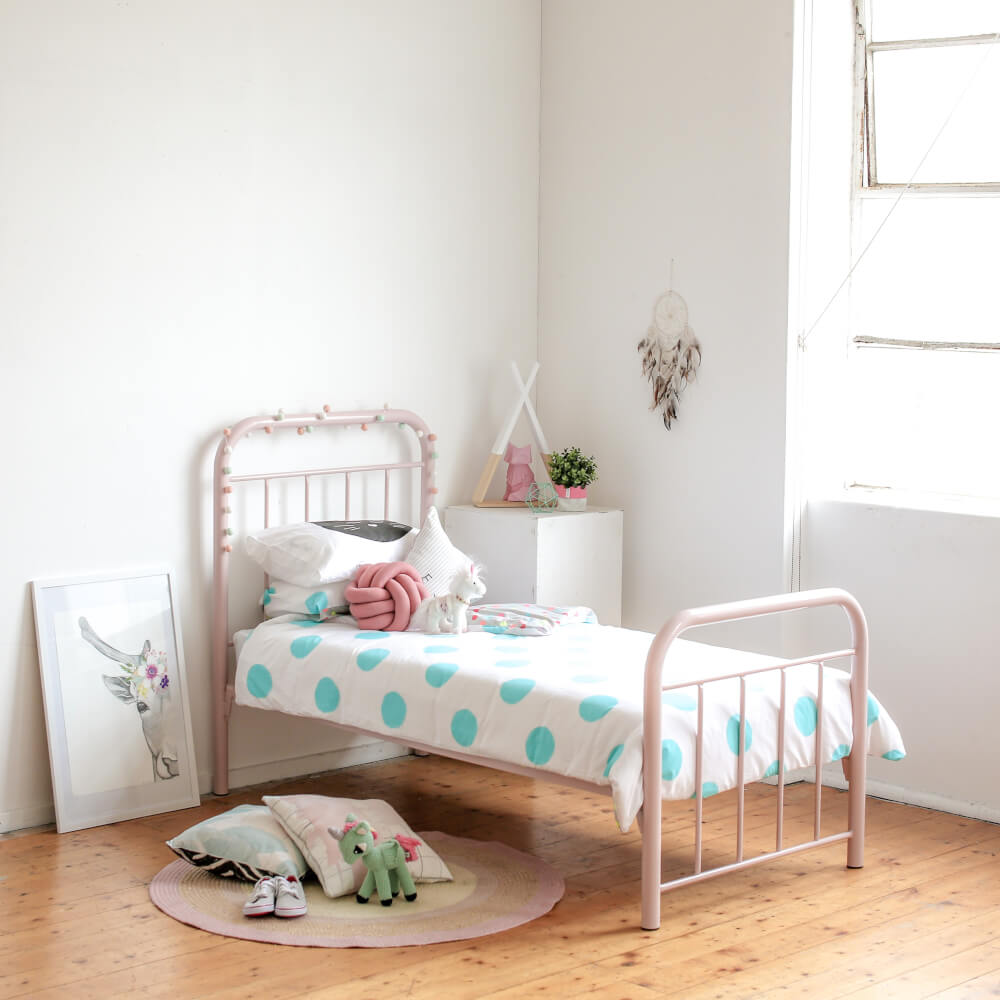 Abigail is our most popular bed and perfectly at home in a kids or adult room. A modern twist on the classic ‘hospital bed’, Abigail is available in Single, King Single, Double and Queen and pictured here in Dusty Pink.